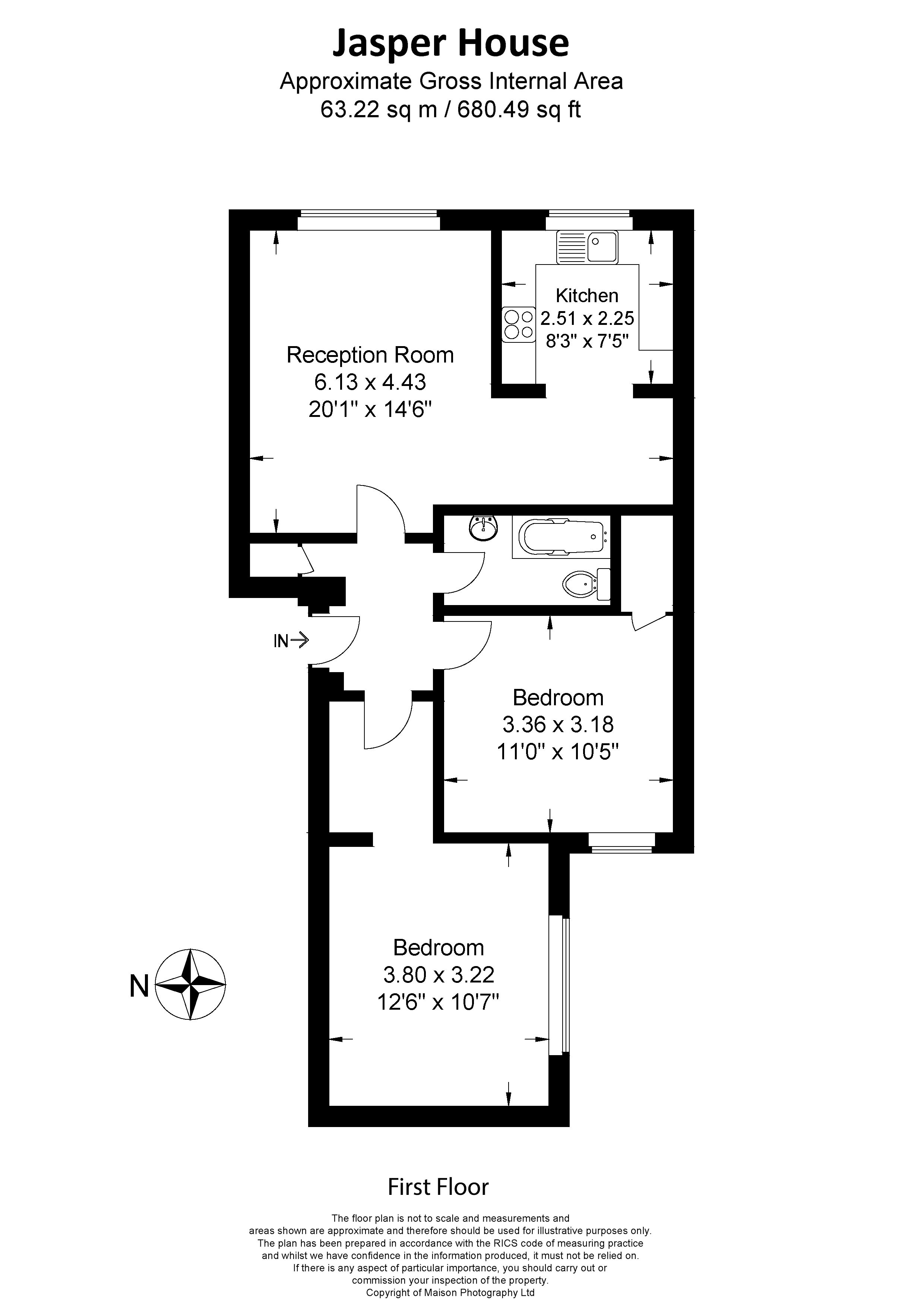 A spacious 2 bedroom flat in a popular modern development. Large living room which leads onto a fitted kitchen. 2 Large double bedrooms and a family bathroom with shower over the bath. Ideal for sharers or a family and a few minutes walk from Malden Manor station.